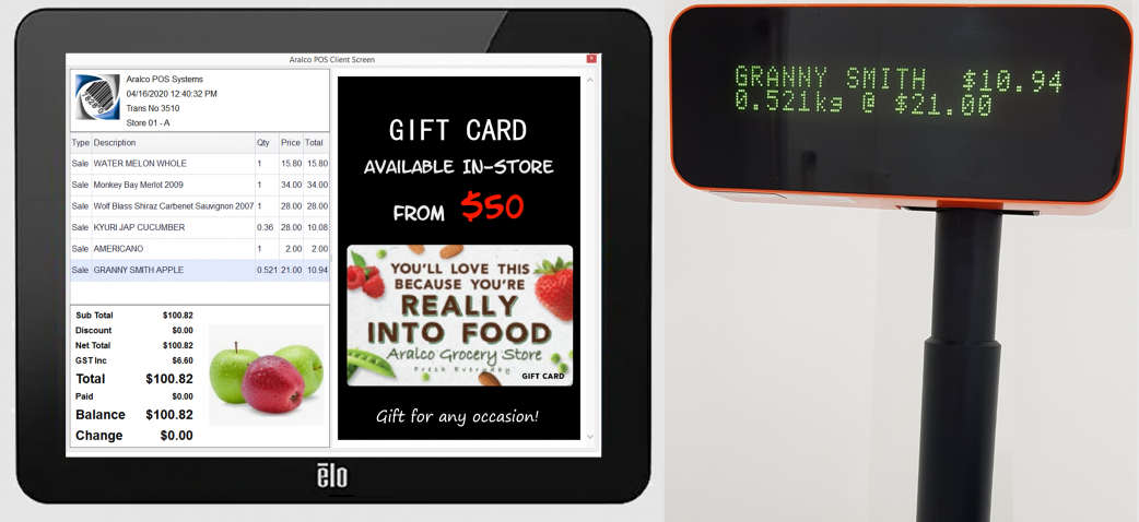 Aralco POS has the capability to connect directly to most scale models with RS232C connectivity - this solution is perfect for customers who can pick up any amount of produce she or he needs and let the cashier weigh them at the checkout.